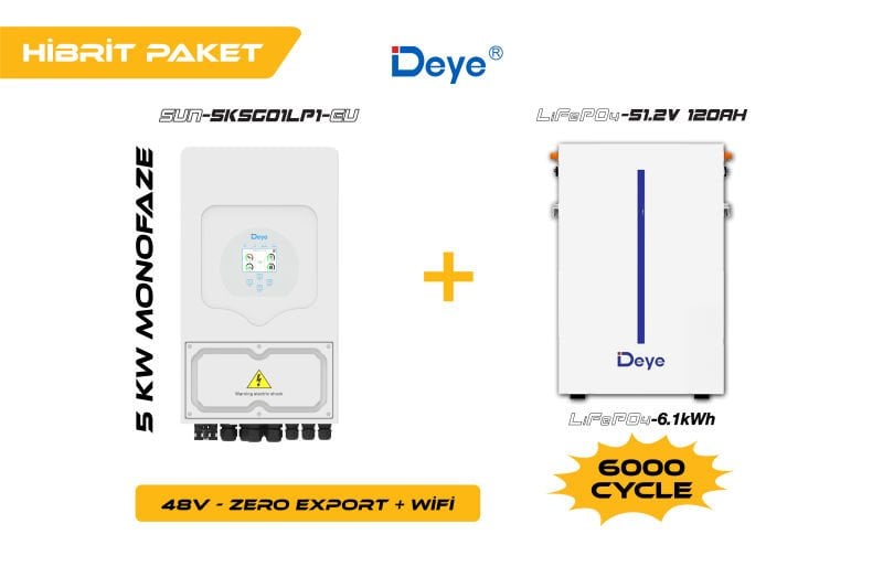 DEYE 5 KW On-Grid Hibrit Monofaze Paketi LV (48V)